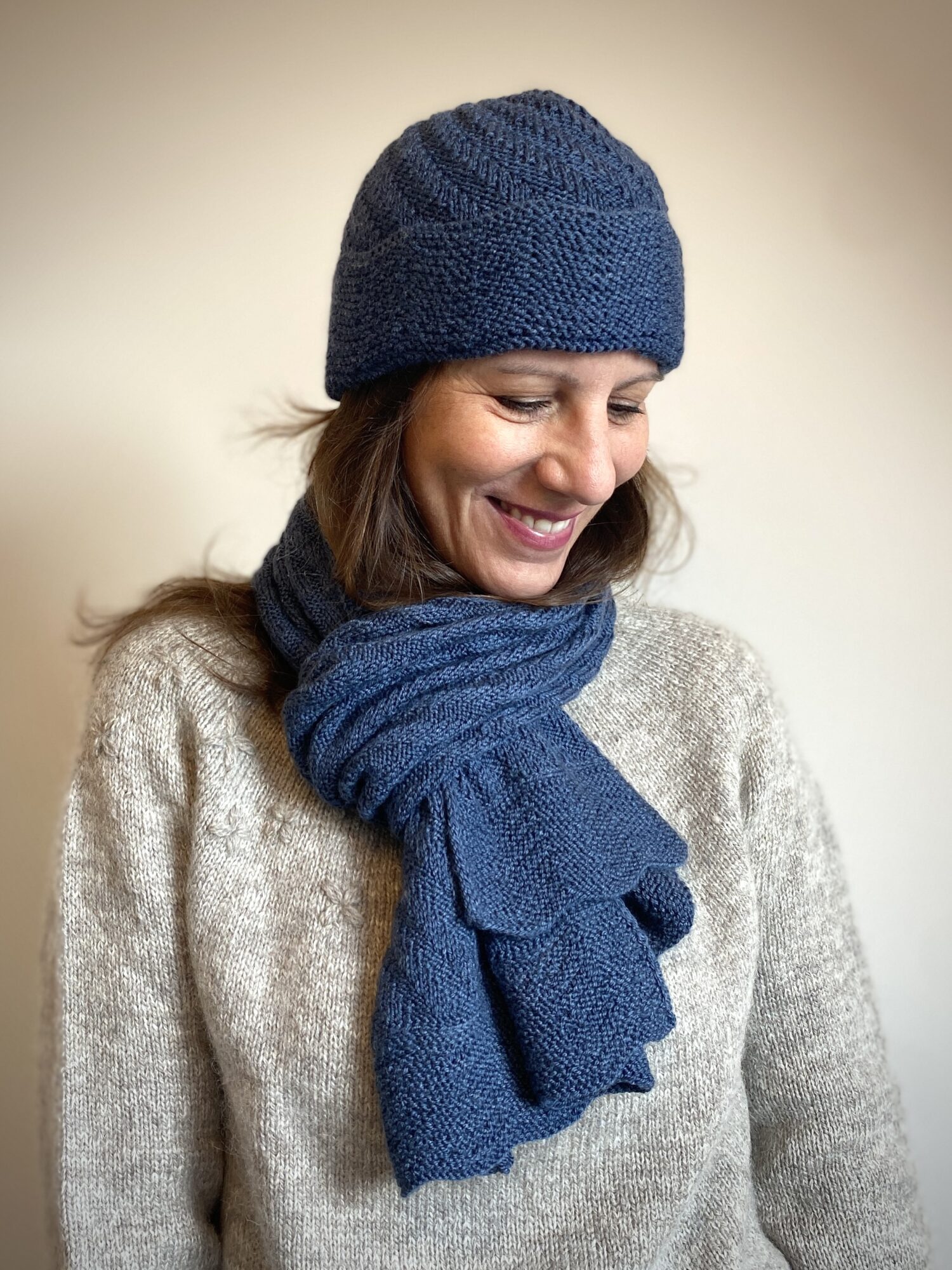 Ondine est un bonnet assorti à l’écharpe du même nom. Il reprend d’ailleurs sa jolie bordure en vaguelette qui devient ici le revers du bonnet, et les côtes en diagonale qui forment le corps du bonnet en une spirale qui se déroule jusqu’à la pointe. Tricoté de bas en haut en circulaire en laine d’épaisseur DK, Ondine est un projet rapide qui vous tiendra chaud avec élégance !